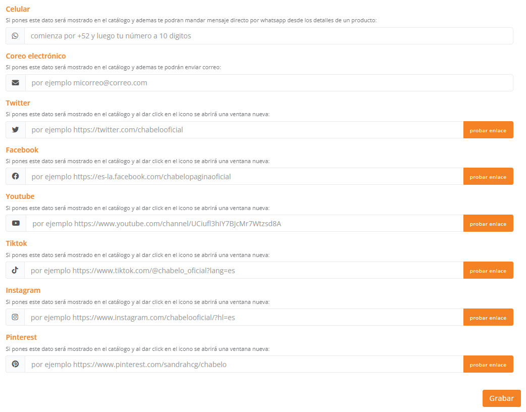 - De forma opcional puedes agregar las ligas a todas tus redes sociales, correo y teléfono de contacto.
